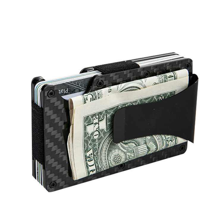 Dompet Minimalis RFID Gentian Karbon dengan Klip Tunai
